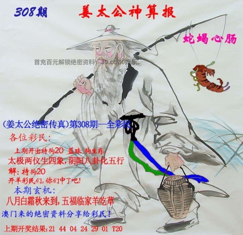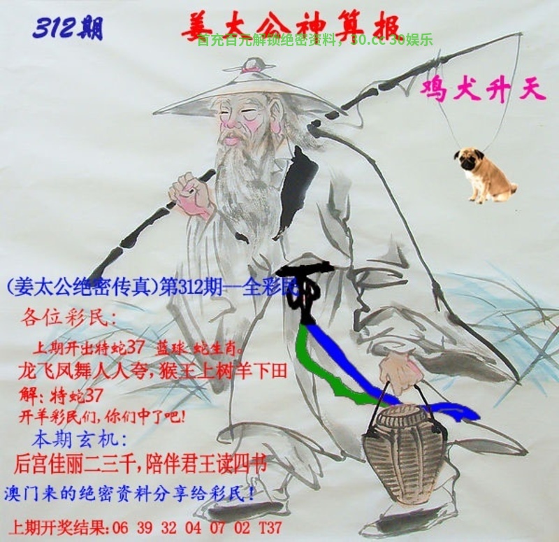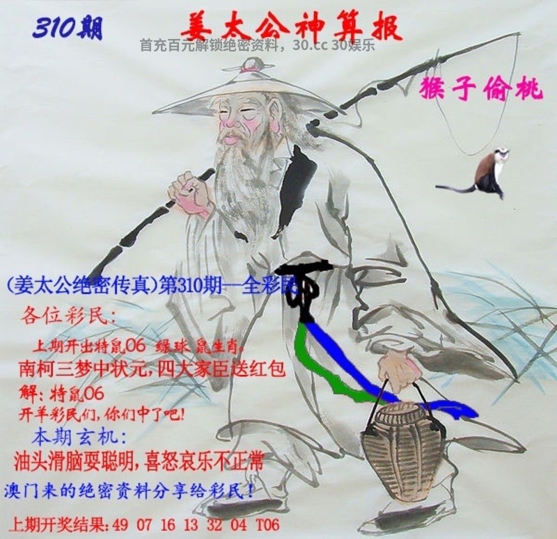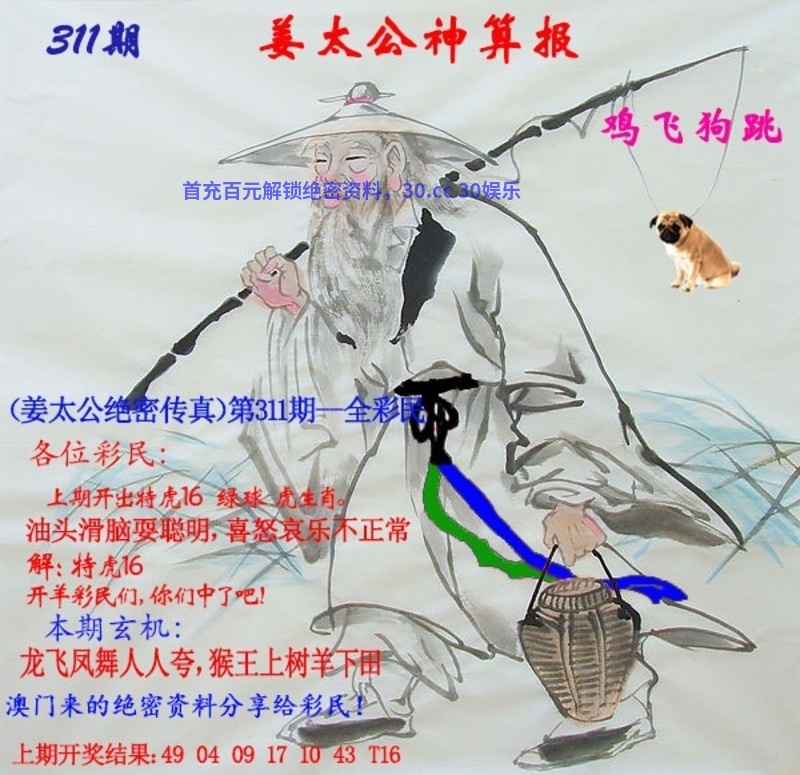 | 【姜太公玄机诗】开:蛇37 311期:上期开出特虎16绿球虎生肖。油头滑脑耍聪明,喜怒哀乐不正常 【解】:龙飞凤舞人人夸,猴王上树羊下田 【综合七肖】鸡羊猪马狗猴蛇 ![]() |